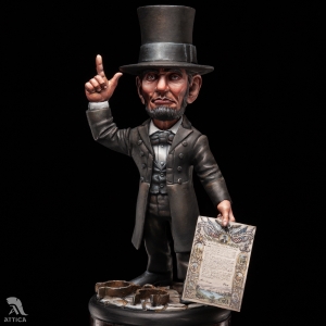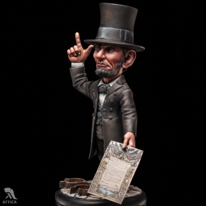 Scale: 1/32 (54mm). Open the figure in the shop: "On the first day of January in the year of our Lord, one thousand eight hundred and sixty-three, all persons held as slaves within any State, or designated part of a State, the people whereof shall then be in rebellion against the United States shall be then, thenceforward, and forever free", stated The Emancipation Proclamation issued by United States President Abraham Lincoln on September 22, 1862, during the Civil War. It proclaimed the freedom and changed the legal status under federal law of more than 3.5 million enslaved African Americans. The custom-made cartoon-style figure of Abraham Lincoln was created by Attica Miniatures and is available painted on order.
