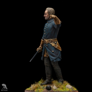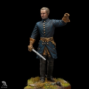 Scale: 1/20 (90mm). Charles XII ascended the Swedish throne at the age of 15 in 1697. He left Stockholm as a 17-year-old boy at the outbreak of the Great Northern War on April 13, 1700, and was never able to see the city again. Charles XII led numerous military campaigns to make Sweden the dominant power in Northern Europe. The young king never managed to end the Great Northern War. As a result of his injury in 1718, he became the last monarch of Europe to fall on the battlefield. According to his contemporaries, Charles XII neglected wigs, wore a blue officer's uniform with copper buttons, a simple black neckerchief and a large cloak, which covered him in campaigns. The custom-made figure of Charles XII created by Attica Miniatures was inspired by the monument to the king pointing towards Russia.