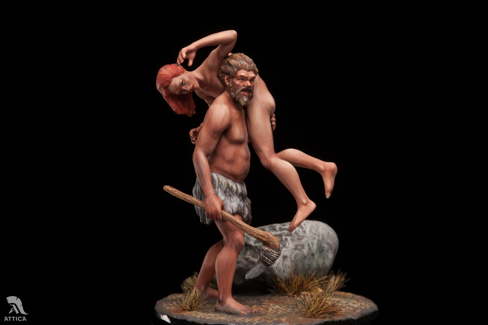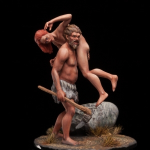 Prehistoric man abducting a woman